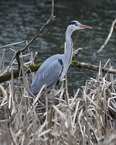 A bit further down from the Diving Board on the right of the path there was a Grey Heron stalking in the margins and all about the grass banks Moorhen were scurrying around.