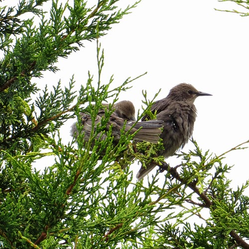 Two of the 100+ juvenile Starlings